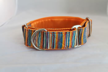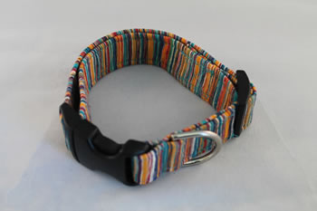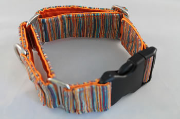 Each collar is constructed with nylon webbing wrapped in a soft, coordinating satin lining. The designer silk is sewn on top. Leashes are available in coordinating velvets to match your collars. Quality is essential to our products. High tensile strength webbing, welded nickel-plated hardware, top notch Nexus buckles, and size appropriate snap hooks produce a quality, durable product.